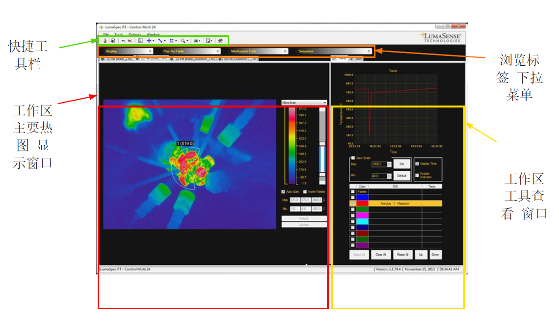 LumaSpec R/T软件提供大量的绘制图表与分析工具, 以便通过距离、区域和时间来描绘热