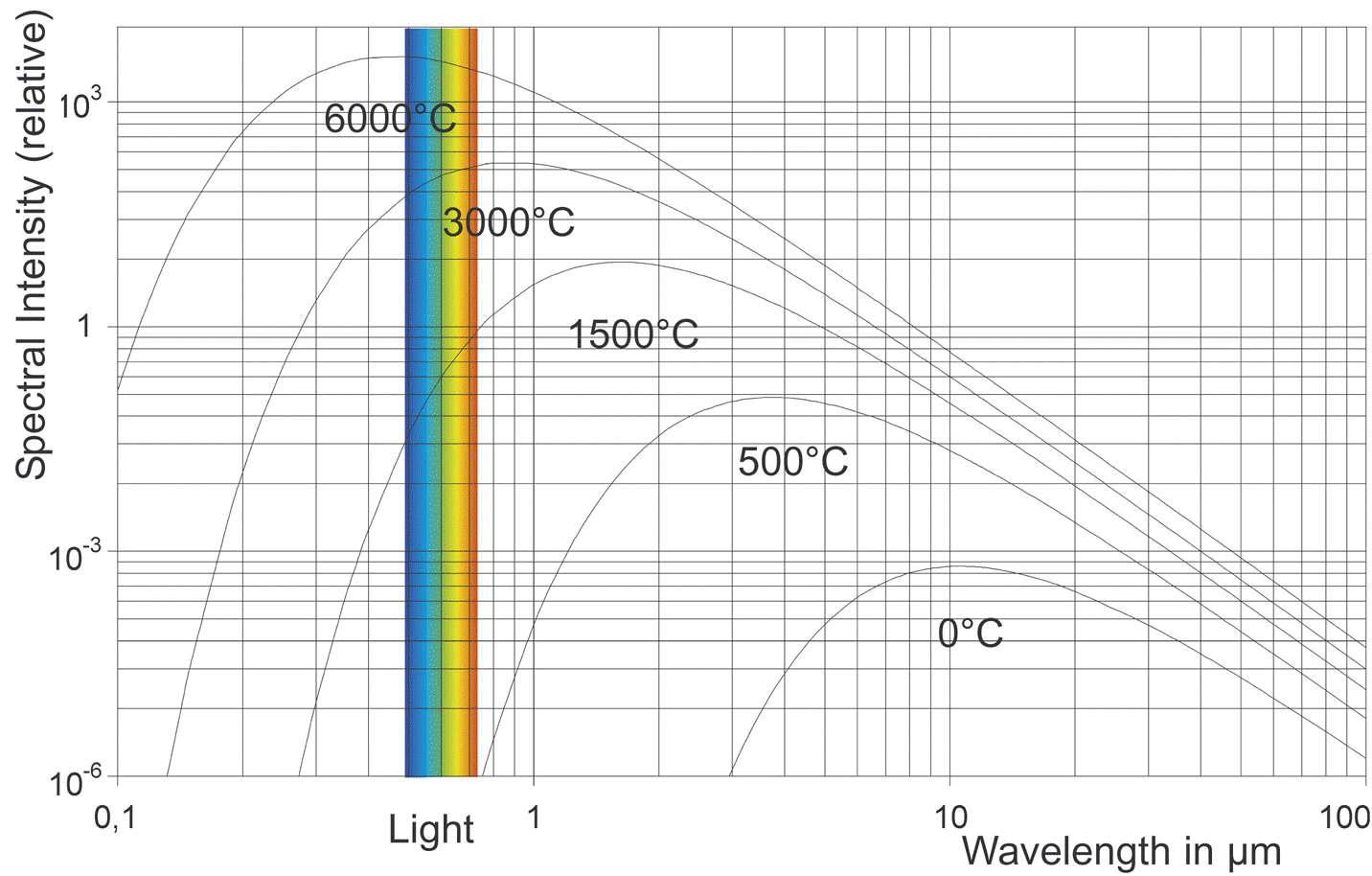 由图中可以看出:每根曲线都是不相交的,且温度越高,辐射出射度越高;另外每根曲线都有一个极大值,在该点出黑体的辐射出射度是相对高的,即辐射出的红外辐射能量也相对较强强。随着温度的增高,极大值对应的峰值波长越短。在红外测温中,应该选用红外辐射的能量较强的波段进行测量,测量结果会准确度更高。激光焊接应用中,尤其是高温的激光焊接应用中。选用短波红外进行测量应该优于使用长波红外进行测量。